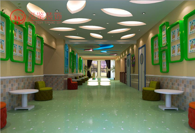 對于幼兒期的孩子,合肥幼兒園裝修的門廳一般空間都比較大,在形象上能夠展示自己的規(guī)模和特色,所以門廳的裝飾須透出其辦園特色和文化。在裝飾設(shè)計(jì)初期可以利用門廳現(xiàn)有界面,巧妙裝飾不同形狀、不同面積的壁畫,體現(xiàn)獨(dú)有的空間的文化內(nèi)涵。壁畫部分正好掩飾其他部位的不協(xié)調(diào)的建筑,拐角墻之類可以裝飾食譜系列掛板,展示幼兒食譜和活動剪影,凸現(xiàn)活潑、有趣和實(shí)用的效果。