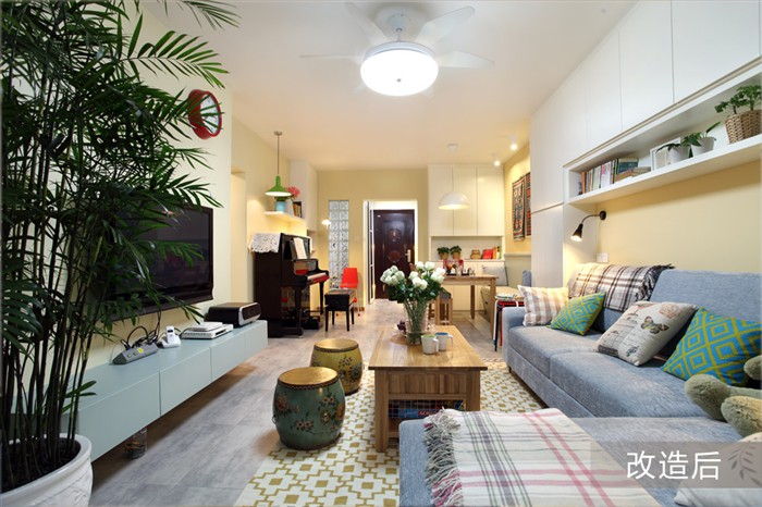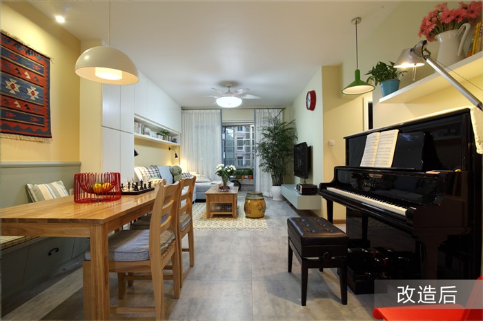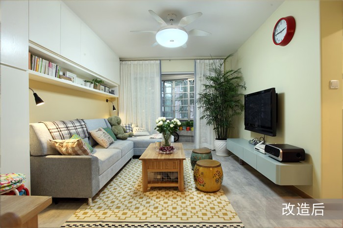 跟著接下來(lái)是客廳,萬(wàn)變不離其宗的還是實(shí)用,柜子特別多,淡淡的顏色也很溫馨很舒服,這個(gè)茶幾還有剛才的餐桌都是業(yè)主在淘寶上買(mǎi)的,價(jià)格也不貴。業(yè)主最高興的居然能放上1米6長(zhǎng)的餐桌,還不擁擠,也是他們當(dāng)初萬(wàn)萬(wàn)沒(méi)有意想到的,開(kāi)心啊!